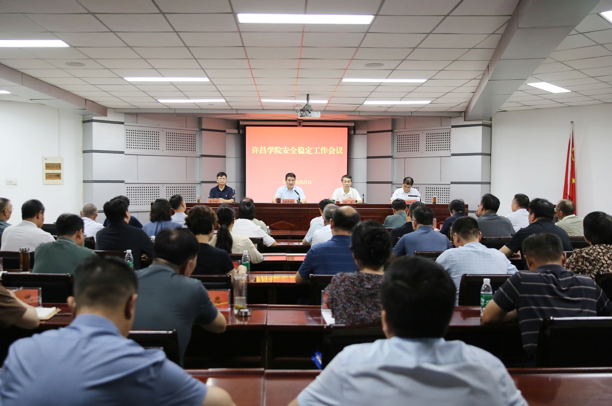 8月27日下午,我校在办公楼第三会议室召开安全稳定工作会议。校党委书记刘荣增,校长郑直,党委副书记、工会主席梁予昉,副校长冯晓民出席会议。会议由郑直主持。