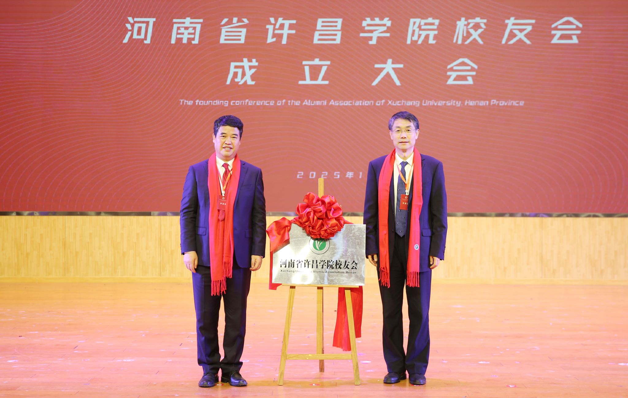 会上,刘荣增和郑直共同为许昌学院校友会揭牌。
